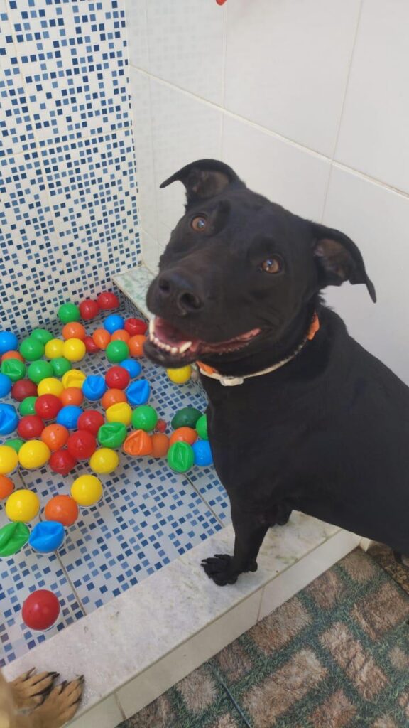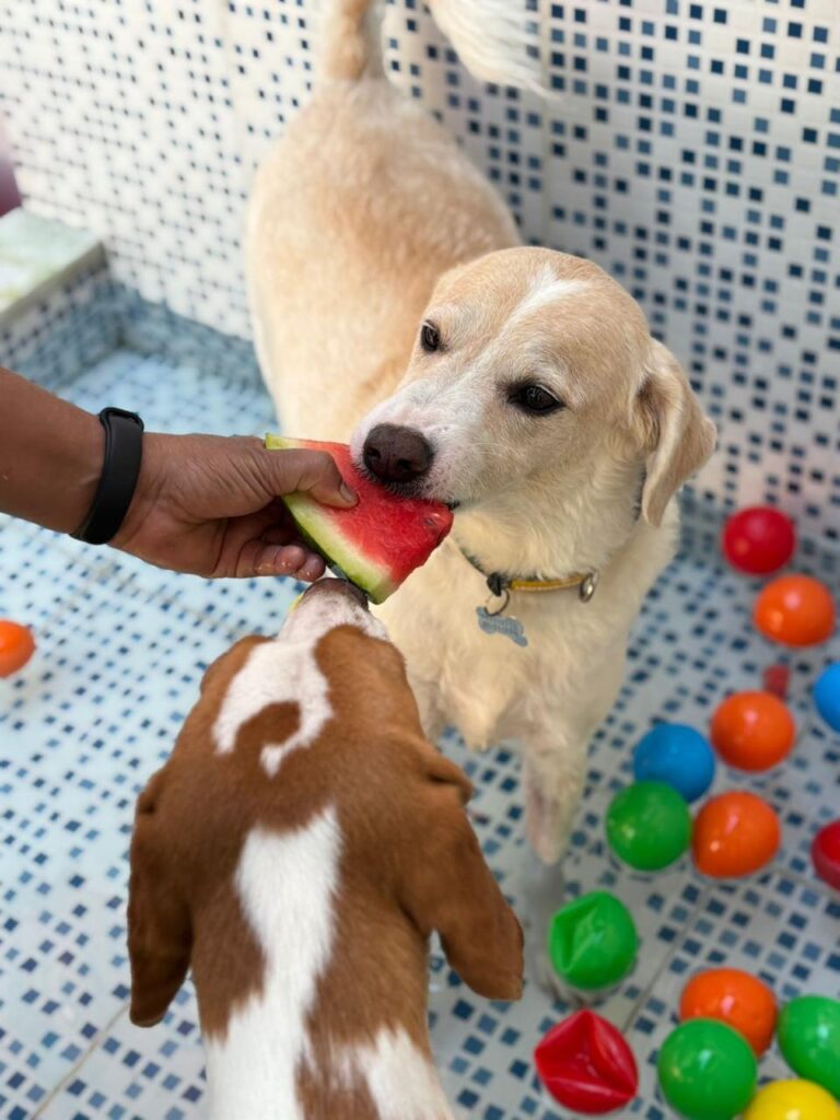 Cães com acesso ao ar livre, banho de sol, brincadeiras, enriquecimento ambiental e monitoramento da equipe e veterinárias parceiras.